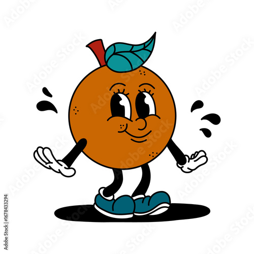 Retro Cartoon Orange Fruit Character Illustration
