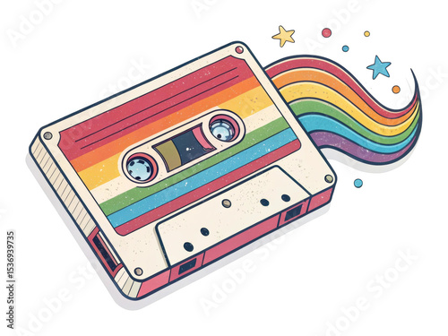 Retro cassette tape art digital creative colorful playful vibe. Sticker concept png