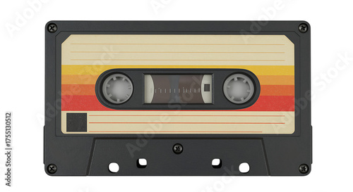 Retro cassette tape with colorful stripes isolated on transparent background, evoking nostalgia and vintage music