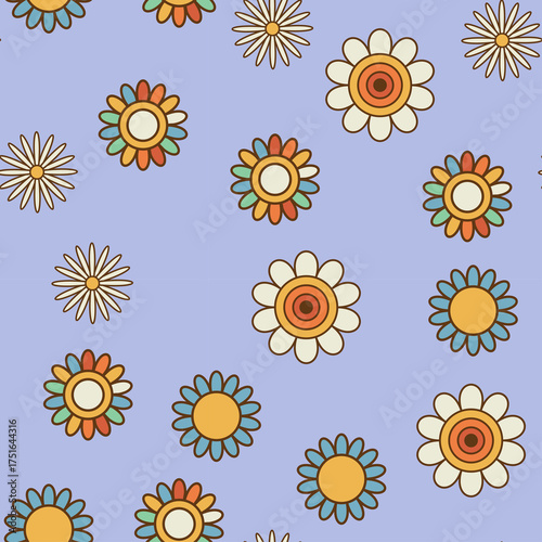 Retro Daisy Flower Pattern Light Purple Background Seamless Repeating Vector Illustration Graphic Design Elements