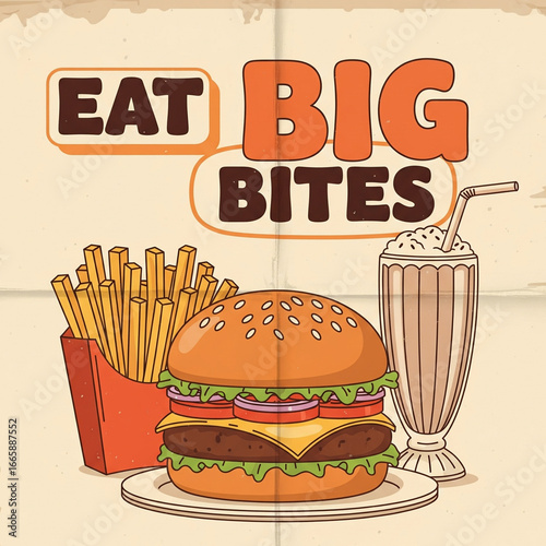 Retro Diner Poster with Burger, Fries, and Milkshake Illustration