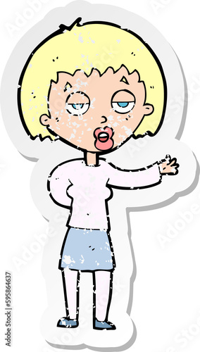 retro distressed sticker of a cartoon bored woman