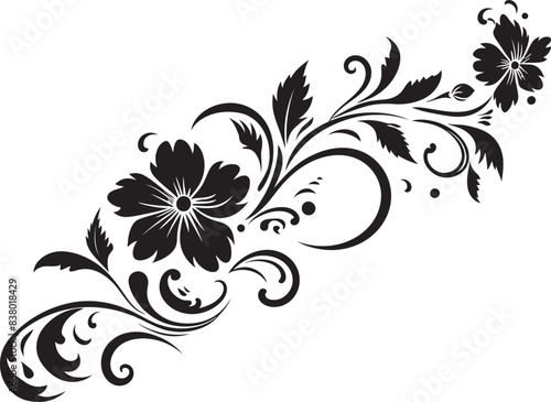 Retro Floral Badge Design Antique Style Decorative Divider Line Emblem Vintage Art