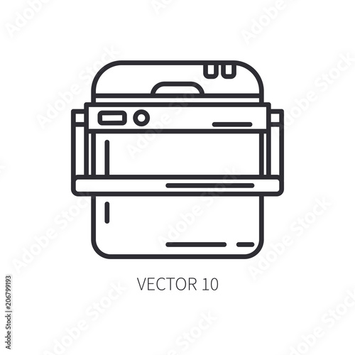 Retro furniture, compact picnic refrigerator line icon. Summer travel vacation, tourism, camping equipment. Backyard classic lunch. Outdoor family picnic, rustic party. Beach cooler. Hiking lifestyle.