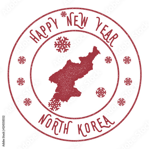 Retro Happy New Year Korea, Democratic People's Republic Of Stamp. Stylised rubber stamp with county map and Happy New Year text, vector illustration.