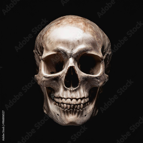 Retro image skull horror close-up on black with clipping mask