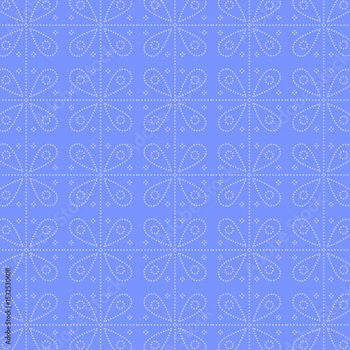 Retro Indian Blue Bandhani Fabric Floral Pattern Vector