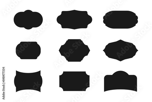 Retro label or sticker. Vintage frame for text. Black retro label or shape for text.
