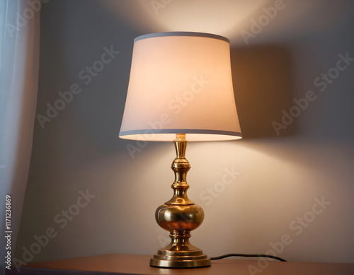 Retro Lamp Glow - Brass Light Fixture on Wooden Table