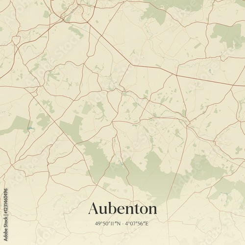 Retro map of Aubenton, Hauts-de-France, France. Vintage street map.