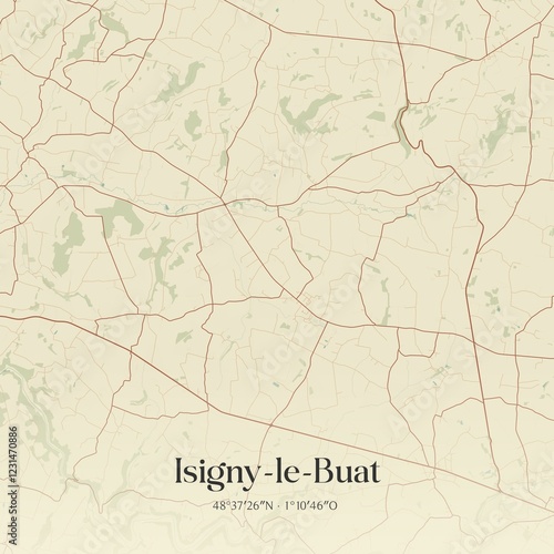 Retro map of Isigny-le-Buat, Normandie, France. Vintage street map.