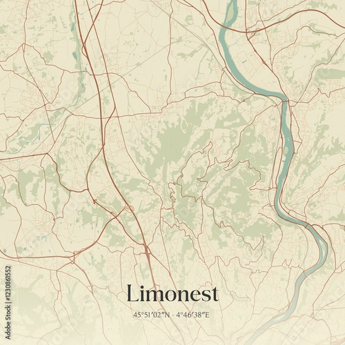 Retro map of Limonest, Auvergne-Rh�ne-Alpes, France. Vintage street map.