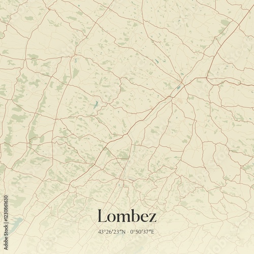 Retro map of Lombez, Occitanie, France. Vintage street map.
