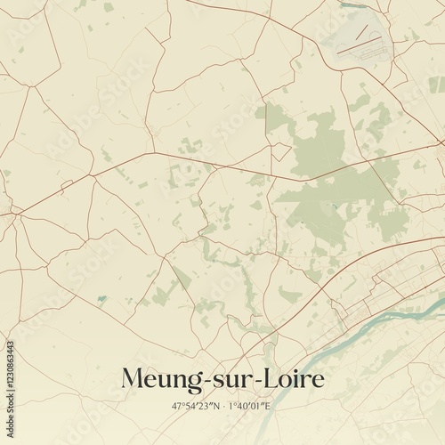 Retro map of Meung-sur-Loire, Centre-Val de Loire, France. Vintage street map.
