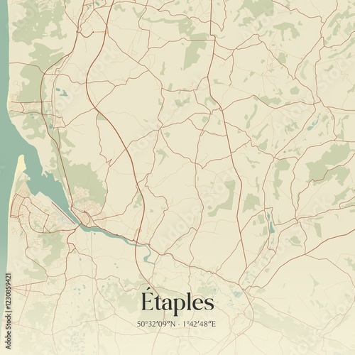 Retro map of �taples, Hauts-de-France, France. Vintage street map.