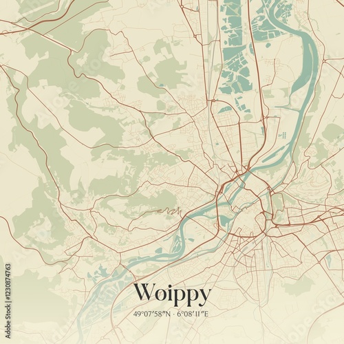 Retro map of Woippy, Grand Est, France. Vintage street map.