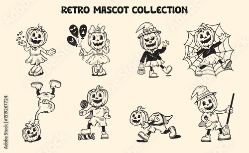 Retro Mascot Collection of Halloween Pumpkin Characters