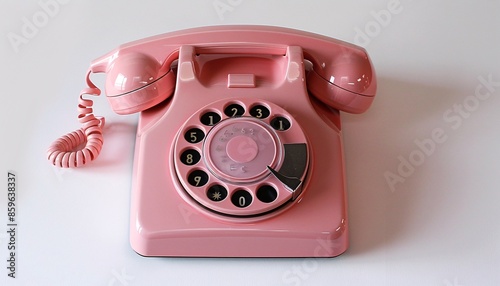 Retro Pink Rotary Dial Telephone on White Background - Vintage Communication Device