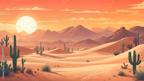 Retro Pixel Art Desert – Sand Dunes & Cacti Under Bright Sun for Adventure & Exploration Themes