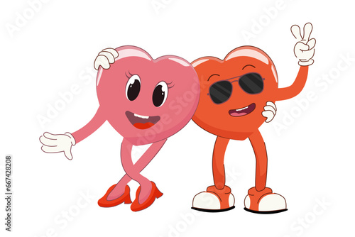 Retro poster with cartoon hearts. I love you.Fashionable 70s cartoon style.