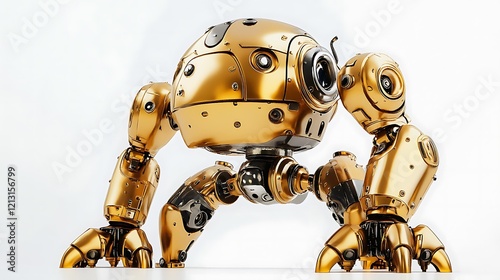 Retro robot toy with metallic finish on white background