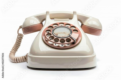 Retro rotary telephone with coiled cord, isolated white background, high detail, vintage charm