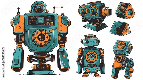 Retro Sci Fi Robot Sticker Design for Futuristic Apparel and Merchandise