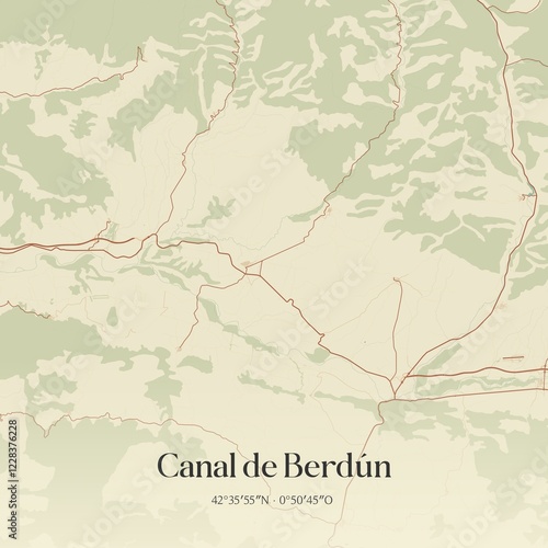 Retro Spanish map of Canal de Berd�n, Arag�n. Vintage street map.