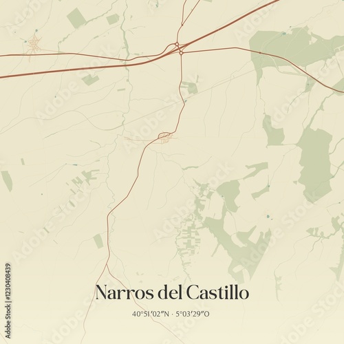 Retro Spanish map of Narros del Castillo, Castilla y Le�n. Vintage street map.