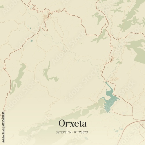 Retro Spanish map of Orxeta, Comunidad Valenciana. Vintage street map.