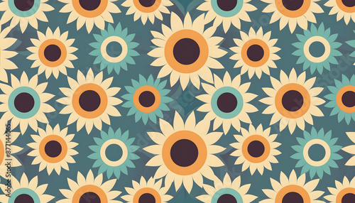retro, style, pattern, blumen, blume, sonnenblume, 60s, urkonisch, neu, Hintergründe, mustern, süss, niedlich, blau, gelb, haben, flagge, national, design, gestalten, entwerfen, vintage, sonne, banner