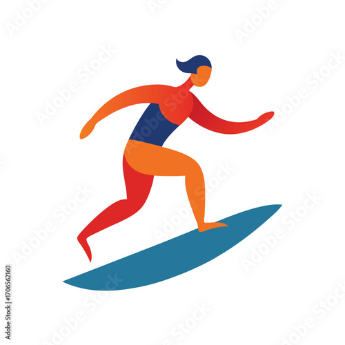 Retro Surfer Riding Waves Flat Color Minimal Artwork