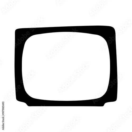 Retro Television Set Black Silhouette with White Screen and Rounded Edges