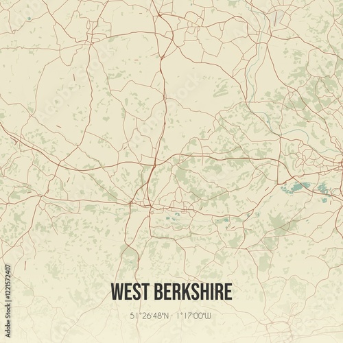 Retro UK map of West Berkshire. Vintage street map.