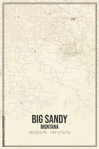 Retro US city map of Big Sandy, Montana. Vintage street map.