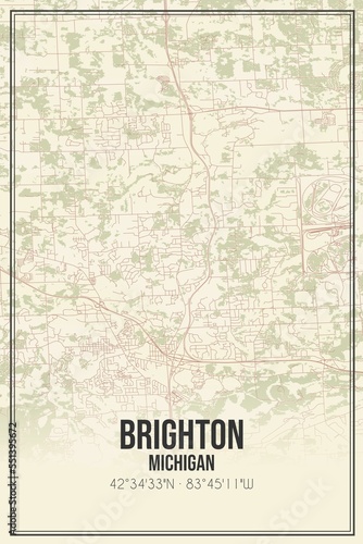 Retro US city map of Brighton, Michigan. Vintage street map.