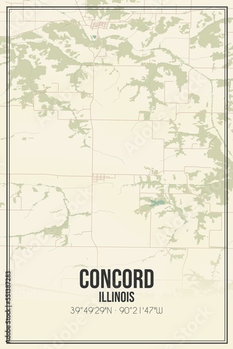 Retro US city map of Concord, Illinois. Vintage street map.