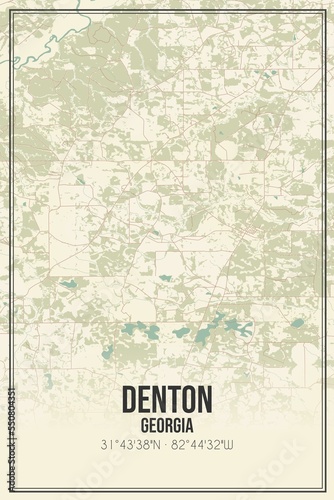 Retro US city map of Denton, Georgia. Vintage street map.