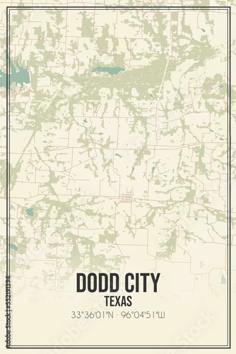 Retro US city map of Dodd City, Texas. Vintage street map.