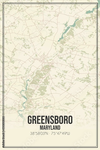 Retro US city map of Greensboro, Maryland. Vintage street map.