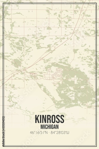 Retro US city map of Kinross, Michigan. Vintage street map.