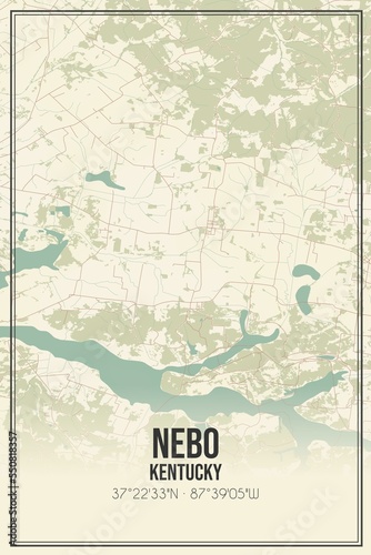 Retro US city map of Nebo, Kentucky. Vintage street map.