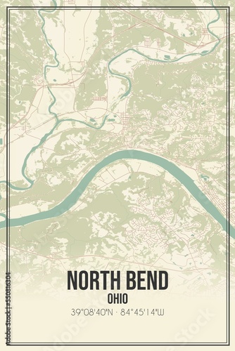 Retro US city map of North Bend, Ohio. Vintage street map.