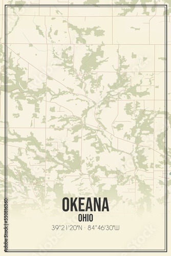 Retro US city map of Okeana, Ohio. Vintage street map.