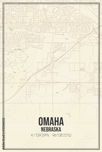 Retro US city map of Omaha, Nebraska. Vintage street map.
