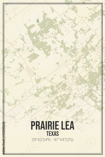 Retro US city map of Prairie Lea, Texas. Vintage street map.