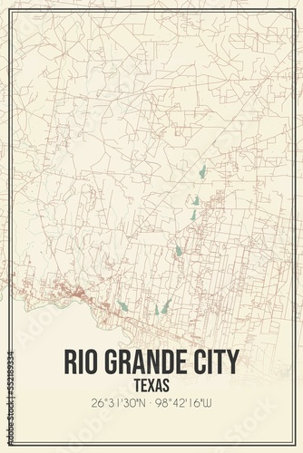 Retro US city map of Rio Grande City, Texas. Vintage street map.