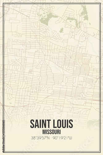 Retro US city map of Saint Louis, Missouri. Vintage street map.
