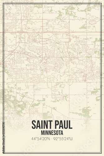 Retro US city map of Saint Paul, Minnesota. Vintage street map.