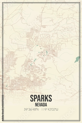 Retro US city map of Sparks, Nevada. Vintage street map.